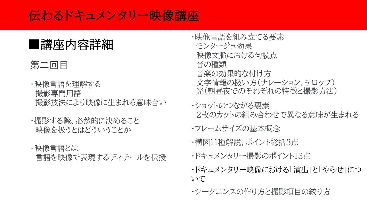 ・プロデューサー業(資金調達、制作進行、上映配給展開など)は授業内容に含まれません。